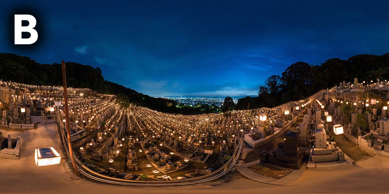 京都で行われる東本願寺の東大谷万灯祭を、2億ピクセルの超高解像度360°パノラマVR画像でお貸し出ししており、様々な用途にご使用いただけます。