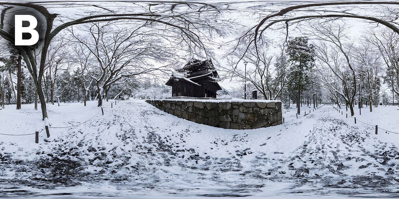 京都にある南禅寺で雪景色のシーンを、2億ピクセルの超高解像度360°パノラマVR画像でお貸し出ししており、様々な用途にご使用いただけます。